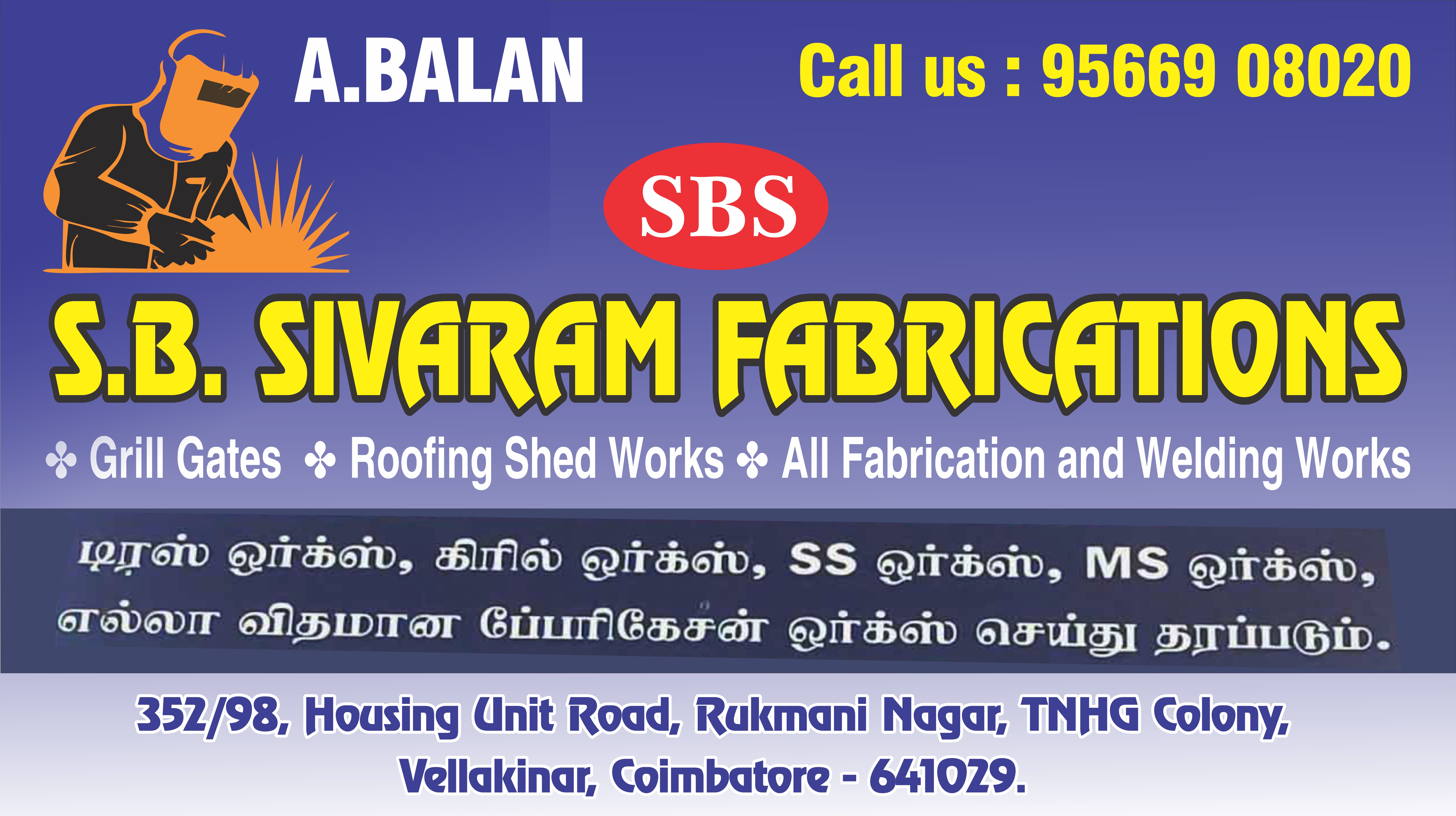 SB Sivaram Fabrications in Coimbatore. Grill gates, Roofing Shed Works, All Fabrication and Welding Works.